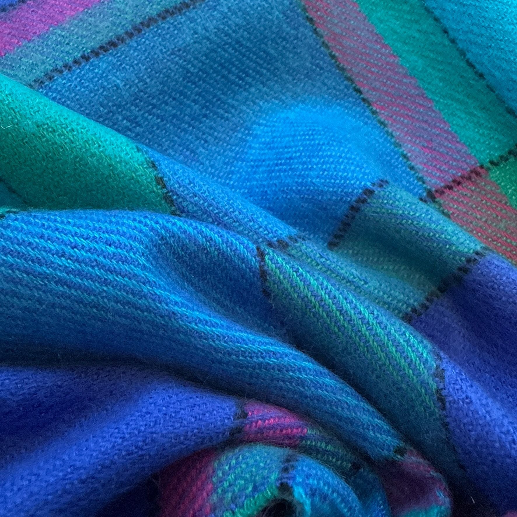 • Bold teal, blue & pink tartan